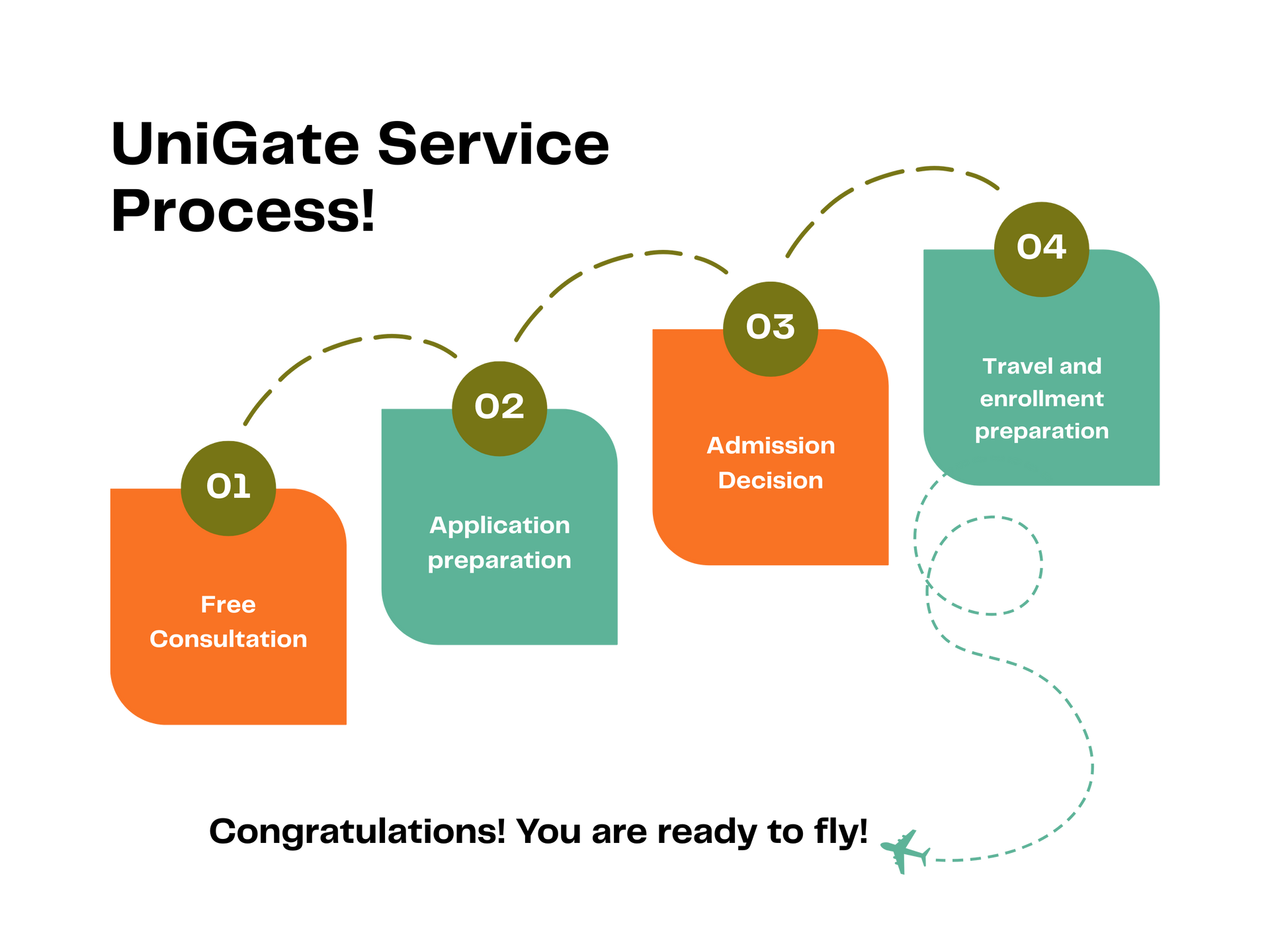 UniGate connects students with a wide range of universities worldwide, ensuring personalized guidance every step of the way. From selecting the right program to securing your place, our experienced team streamlines the process, making studying abroad accessible, efficient, and tailored to your goals.